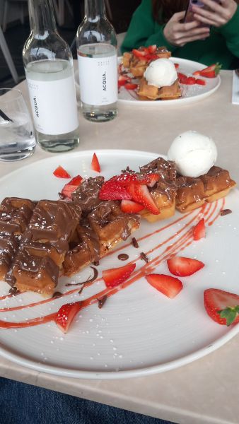 Lizzie couldn’t resist the ‘An Offer She Can’t Refuse’ waffle, a showstopper drizzled with silky Belgian milk chocolate, topped with juicy fresh strawberries, and served with a generous scoop of Madagascan vanilla gelato.